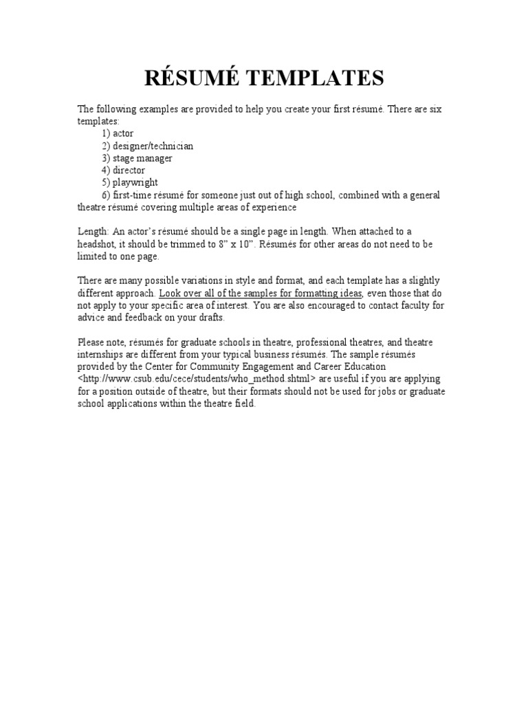 Beginner Acting Resume Resume Templates from resume-templates.com Please note, résumés for graduate schools in theatre, professional theatres, and theatre internships are different from your typical business résumés. Working in a theater is not only rewarding but also fulfilling. Writing a good resume is like. Theatre resume example musical theatre resume template the general format and theater resume template 8 free word pdf documents Theater resume example entertainment production fine arts. Free acting resume samples and examples ace your audition. Project manager resume sample pdf s. A basic formula for setting up your theatre resume.